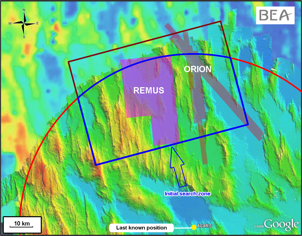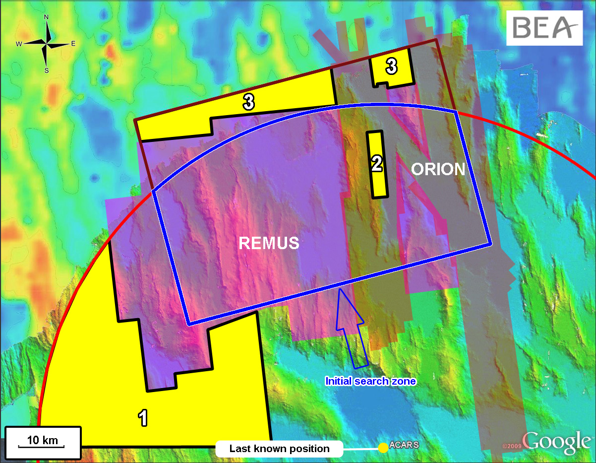 After reporting to Mr Dominique Bussereau, Secretary of State for Transport, on the sea searches, the BEA has, at the Secretary’s request, prepared a further stage in the operations. The BEA believes that it is in fact still possible to localize the airplane wreckage in or near the zone that has just been explored. It is thus considered appropriate to use the equipment that has already been mobilized and is available to continue the operations as quickly as possible.