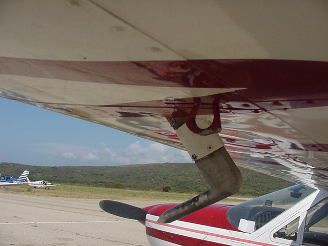 Les deux aéronefs sont dotés d'une voilure haute ; celle du C 177 RG, légèrement plus basse que celle du C 182 E, est dépourvue de haubans. Sur la vue de droite, les traces relevées sur l'extrados du saumon permettent d'évaluer l'angle entre les trajectoires des deux aéronefs au moment du choc.