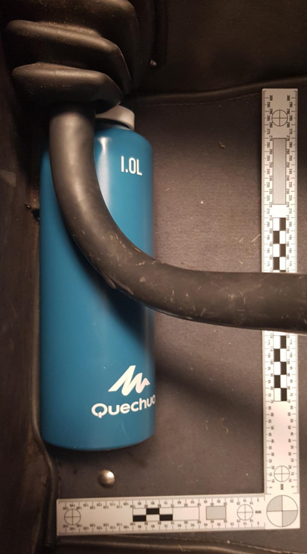 Le passager a bu dans sa gourde alors que les actions avant décollage venaient d’être réalisées. Il l’a ensuite posée sur son siège. Lors du roulement au décollage, la gourde est tombée sur le plancher.
