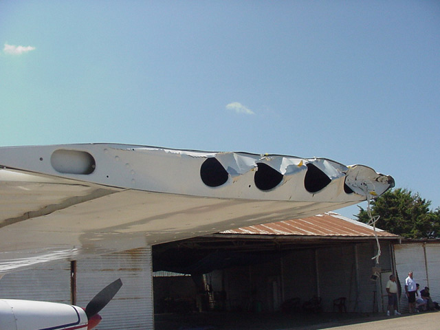 Les deux aéronefs sont dotés d'une voilure haute ; celle du C 177 RG, légèrement plus basse que celle du C 182 E, est dépourvue de haubans. Sur la vue de droite, les traces relevées sur l'extrados du saumon permettent d'évaluer l'angle entre les trajectoires des deux aéronefs au moment du choc.