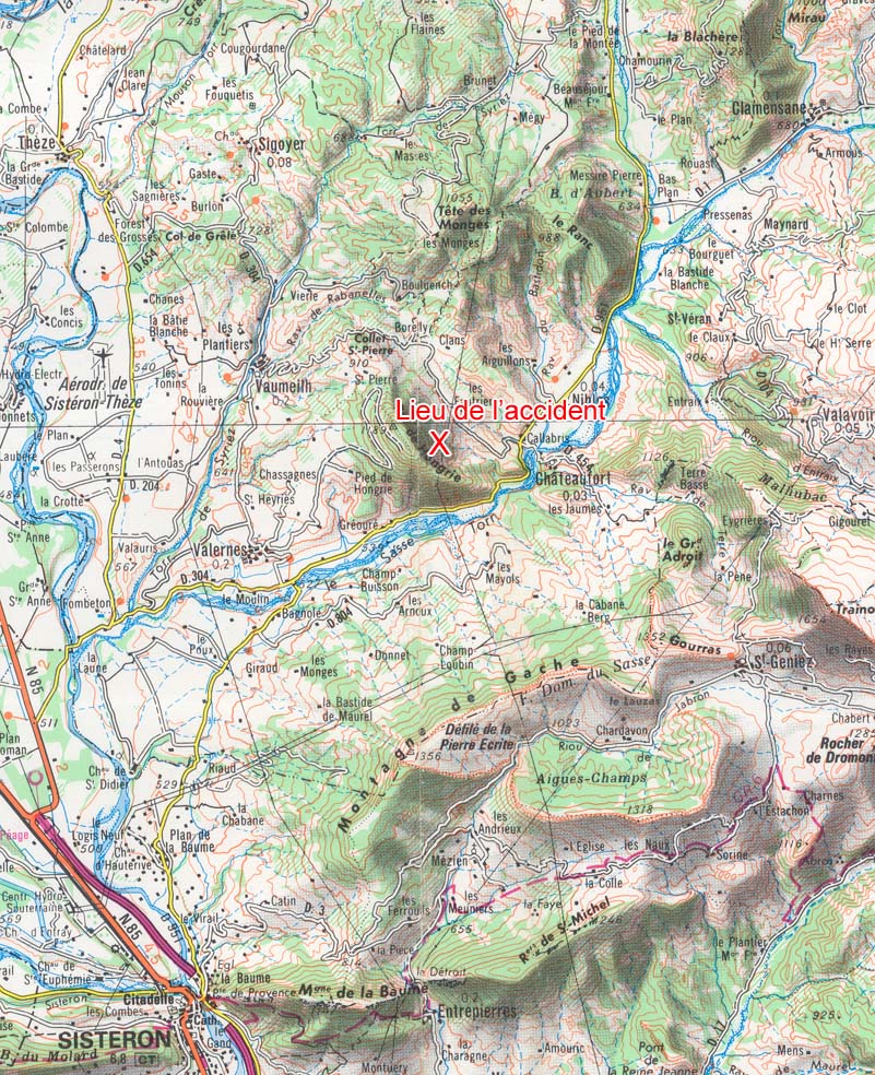 The gliders had taken off from Sisteron aerodrome about an hour previously. They were in the same sector at an altitude of 1,800 metres. The pilots were spiralling, one to the left and the other to the right, in two different thermal updrafts. Around ten gliders were flying in each of the updrafts. Just before the collision, the Discus pilot banked at about 30° to the left and the LS4 pilot banked at about 20° to the right. After the impact, both pilots managed to get out of their aircraft and use their emergency parachutes.