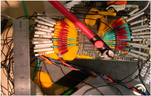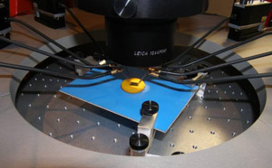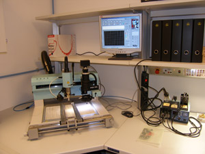 Une station de test sous pointes est alors utilisée afin de recréer les connexions électriques endommagées et lire les données du composant.